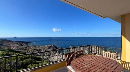 It is located in a well-maintained community with mature gardens, several terraces, barbecue areas and direct access to the sea and rocky beach.