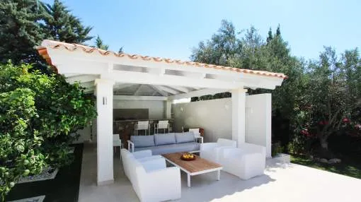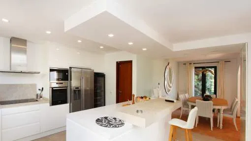 This exclusive villa is located in Santa Ponsa, which is renowned for its stunning coastal landscape, luxurious properties, and first-class leisure facilities. Offering the perfect blend of natural beauty and modern comforts, Santa Ponsa is an ideal place to live for families and those seeking peace and quiet. There are several beautiful beaches in the immediate vicinity where you can sunbathe and enjoy water sports. The area is also very popular with golf enthusiasts thanks to its several renowned golf courses. Santa Ponsa also has numerous restaurants, exclusive boutiques and various shopping opportunities.
