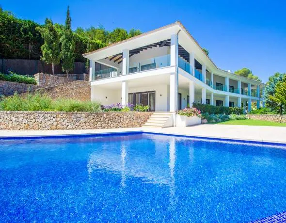 This modern, fully renovated villa is located in a peaceful area above a bathing bay, close to the sandy beach of Cala Fornells and just two lines back from the sea. The centre of Paguera, with its shops and restaurants, is within easy reach, as are the Port Andratx marina and the Camp de Mar golf course.