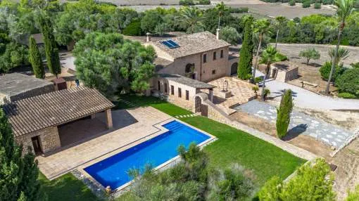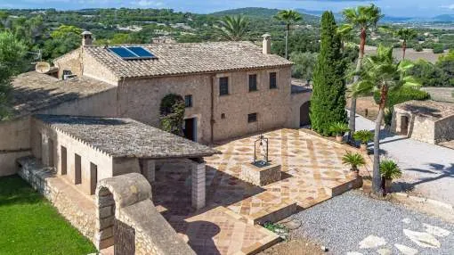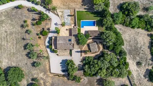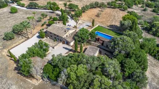 Just ten minutes from the town of Manacor and the prestigious Rafa Nadal Academy, this spectacular estate combines traditional Mallorcan architecture with contemporary comfort. With a total area of 110,000 m² spread over two legally independent plots, this property offers endless possibilities for both residential use and future projects, as a house of up to 300 m² can be built on the adjacent plot.