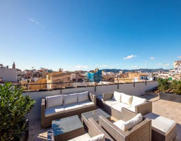 A true highlight is the 60 sqm private rooftop terrace, offering a wonderful view over the historic rooftops of Palma’s old town. The lounge area invites you to relax and unwind, while the covered section of the terrace provides ample protection from the sun and wind.