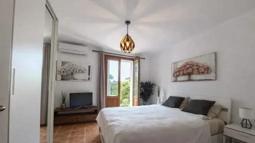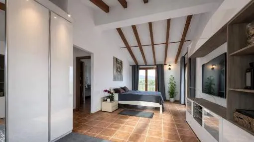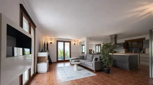 Details: Between Alcúdia and Pollença, this light-flooded country house welcomes you with the tranquility of the north and views ranging from the Tramuntana mountains to the sea. On approximately 15,854 m² with olive trees and mature gardens, a place unfolds that celebrates Mediterranean outdoor living: sunny and covered terrasses, private pool, and plenty of space for long summer days. Inside, the finca impresses with spaciousness and clarity. The ground floor opens from the entrance hall into a spacious living room with two exits, a modern adjacent kitchen, and a separate dining room – perfect for social evenings. Four double bedrooms with en-suite bathrooms offer comfort on one level and make the house ideal for families and guests. On the upper floor, the master suite with its own bathroom, an office, and an additional room for dressing, fitness, or retreat await. 363 m² of built area, wooden carpentry, tiled floors, and abundant light create a warm, high-quality ambiance that immediately feels right – in everyday life as well as on vacation. Technically, everything is designed for relaxed living: air conditioning hot/cold, oil central heating, double glazing, and fireplace for cozy winter evenings. Fiber optic internet keeps you connected, well water, water cistern, and automatic irrigation ensure efficient supply. Two parking spaces complete the offer. The location combines tranquility and proximity: in about 10 minutes you reach Alcúdias medieval streets or Puerto Alcúdia marina with its 7 km sandy beach. Golfers will appreciate several courses within 5–10 minutes, including the renowned Alcanada Golf directly by the sea – a rare mix of rural idyll and excellent connectivity, year-round. Particularly valuable: the holiday rental license (ETV). Combined with 5 bedrooms/5 bathrooms, spacious common areas, pool, and panorama, an excellent investment opportunity with tangible income potential emerges. A house that wins hearts and convinces numbers. Here you can find some more interesting information to this property: , , https://tour.ogulo.com/dldc Take a 360º tour of this property! Returns from holiday lettings: For initial orientation you can use the “Porta Holiday Returns Calculator” without obligation to calculate your potential returns from holiday letting. NB: Due to the current legal situation it is possible that in certain municipalities renting restrictions may apply, or new touristic licences may not be granted. Your Porta Mallorquina real estate consultant will be pleased to advise you whether the property you have chosen is affected. Go to Returns Calculator. Location & surrounding area: Alcudia, which in the Middle Ages was actually the original capital of Mallorca, offers one of the longest beach promenades of the island and has a correspondingly perfectly developed infrastructure, as well as some very interesting sub-areas that you should definitely be visited. Surrounded by an impressive city wall, the old town of Alcudia offers a strikingly clean and orderly appearance throughout and exudes a unique charm, especially at early evening. Many bars and restaurants of all type are spread over the town, and there is something for every taste. Also not to be missed is the extensive market on Tuesdays and Sundays. Alcudia, which is geographically situated on a peninsula but also offers two very interesting residential areas; Bonaire in the north and Aucanada in the south.