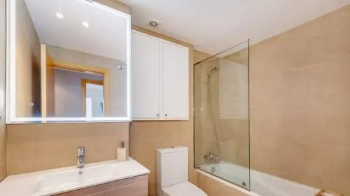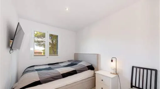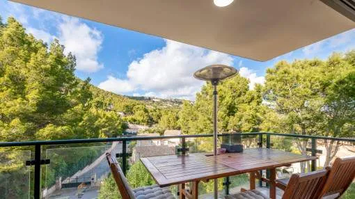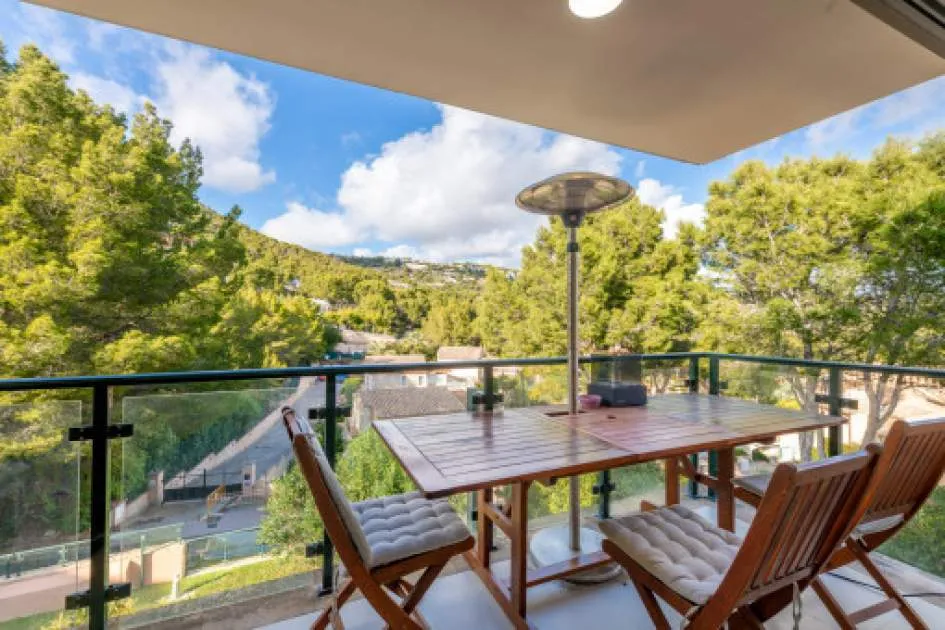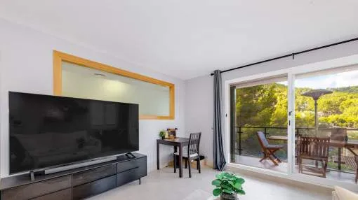 Details: This exclusive apartment in Port d’Andratx impresses with its excellent location – just 5 minutes from the sea and the beach. Surrounded by Mediterranean nature and the unique charm of this popular harbor town, it offers the perfect retreat for those who appreciate peace, comfort, and proximity to the sea. The bright apartment, with a constructed area of 113 sqm, features a well-thought-out layout and a pleasant living atmosphere. It offers 3 bedrooms, 2 bathrooms, a separate kitchen, and a spacious open-plan living room filled with natural light – ideal for families or as a holiday home. A particular highlight of the property is the covered balcony with 6 sqm, inviting you to relax and enjoy the surroundings. In addition, the second garden area of 57 sqm provides an idyllic green retreat. Both outdoor spaces offer wonderful views of the surrounding nature, creating a harmonious sense of outdoor living. The small, well-maintained community complex provides a peaceful and pleasant environment. A communal swimming pool invites you to unwind and cool off on warm days, perfectly complementing the Mediterranean living ambience. Features include: Integrated air conditioning (hot/cold), an elevator, an underground parking space, and a storage room. Location & surrounding area: Port d'Andratx is one of the best-known natural harbours in Mallorca, once a modest fishing village which, over the years, has become one of the most popular and exclusive areas on the island with its exceptional villas, luxury hotels and nautical activities and numerous high-quality gourmet restaurants serving every kind of international delicacy. Apart from its bars, boutiques and restaurants Port d'Andratx is surrounded by wonderful Mallorcan nature, including the bathing bays of Cala Llamp, Cala Moragues, and Cala d'Egos offering pure relaxation. The fishing way-of-life of the harbour, however, has never been displaced and in fact is expanding, reflected in the fish market which takes place after the arrival of the fishing boats at the pier. There are also monuments in the harbour of great historic and architectural interest, such as Sant Carlos on the pier, or the defensive towers. The unforgettable sunsets and the unique flair which make the area so unique can best be celebrated at the end of the day accompanied by an enjoyable glass of wine at the side of the harbour.