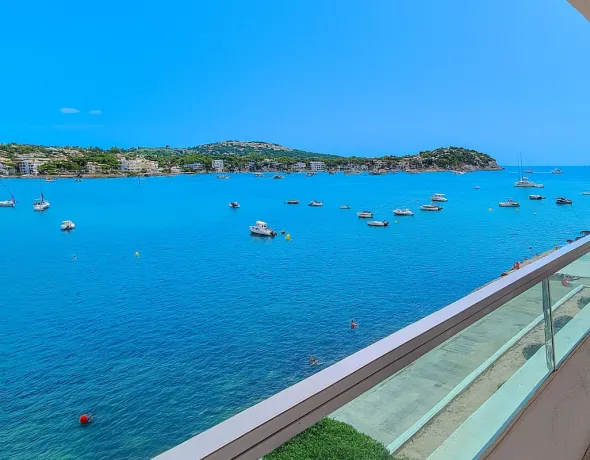 In a prime frontline location in Santa Ponsa, this offering includes two adjacent units in the Globales Verdemar apartment complex: one apartment (approx. 51 m²) and one directly neighboring studio (approx. 26 m²), both with spectacular views over the bay of Santa Ponsa.