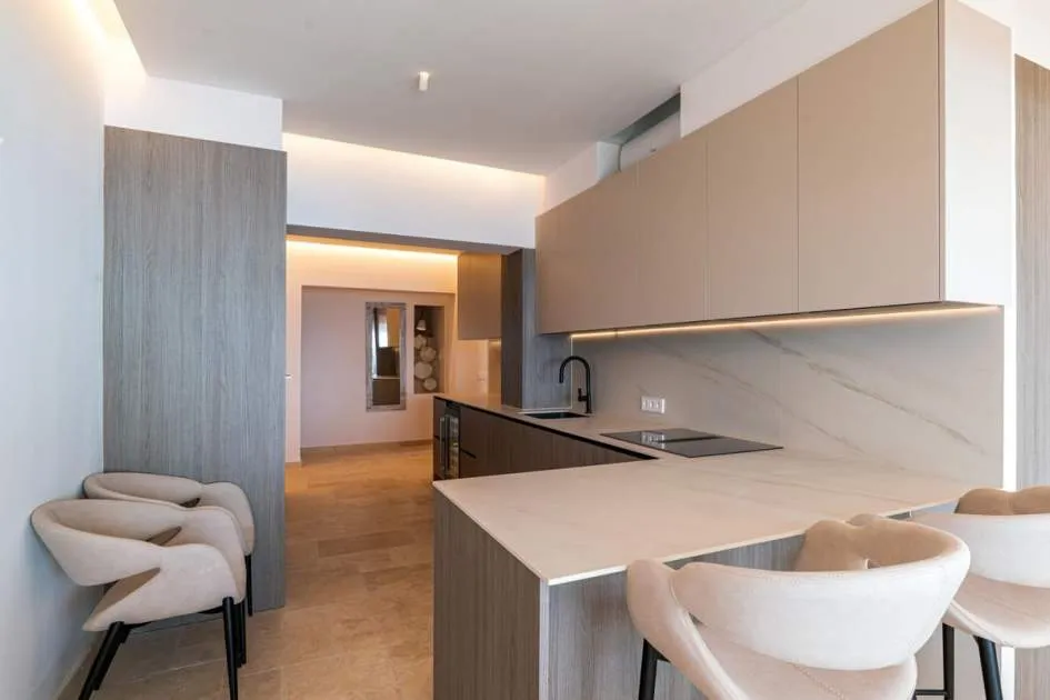 Elegant apartment enjoying fantastic sea views and just steps from the Illetas beaches. The property has been totally renovated and has the following distribution: an entrance hall, living/dining room with doors to the sunny terrace, designer kitchen with breakfast bar, 2 bedrooms and 2 bathrooms, one of which is en suite. Further features include: hot & cold air-conditioning, sun blinds, double glazing, 2 wall mounted televisions, stone floors, fitted wardrobes and a parking space. Illetas is located only a 10 minute car ride to the historical town centre of Palma and has a variety of local shops, restaurants, cafés and supermarkets.