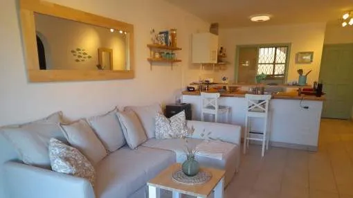 Details: This well-maintained and fully furnished rental apartment is located in an attractive area of Cala Santanyí and is available for seasonal rental from 24 July 2026 to 4 September 2026. The apartment is situated in a quiet, well-kept residential complex with a communal swimming pool, offering ideal conditions for a relaxing stay on Mallorca. With a living area of approximately 69.5 m², the apartment features two bedrooms, one bathroom, and a bright, open-plan living, dining, and kitchen area. The fully equipped open kitchen flows seamlessly into the living and dining space. From here, there is direct access to the balcony/terrace, which invites you to enjoy outdoor living. An air conditioning unit in the living area ensures comfortable temperatures even during warm summer days. The apartment is rented fully furnished and fully equipped. The beach of Cala Santanyí can be reached in approximately a 5-minute walk. Shops, restaurants, and cafés are also located nearby. Electricity and water costs are charged separately according to consumption. The security deposit amounts to xxx EUR. Prices for monthly seasonal rentals monthpriceJanuary- unavailable - February- unavailable - March- unavailable - April- unavailable - May- unavailable - June- unavailable - July- unavailable - August€ 2,000.- September- unavailable - October- unavailable - November- unavailable - December- unavailable - Location & surrounding area: Cala Santanyí is located in the idyllic southeast of Mallorca and is one of the most popular coastal areas in the region. The surroundings are characterized by Mediterranean nature, pine trees, rocky coves, and a quiet, well-maintained residential atmosphere. The beautiful sandy beach of Cala Santanyí, with its crystal-clear waters, is within walking distance and invites you to swim, snorkel, and relax. Restaurants, cafés, small supermarkets, and other everyday amenities are located nearby. The charming town of Santanyí, known for its weekly market, a wide range of shops, and medical facilities, can be reached within a few minutes by car. Cala Santanyí offers a perfect combination of tranquility, nature, and good infrastructure, making it ideal both for a relaxed long-term stay and as a peaceful retreat with a high recreational value.