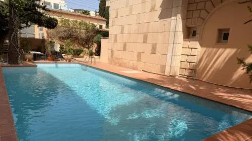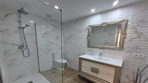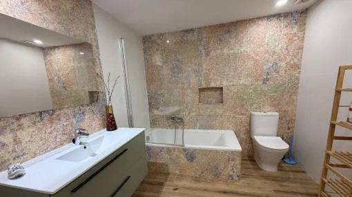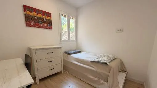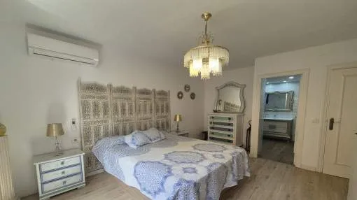 Details: This charming apartment is in an excellent location in the popular district of San Agustín, directly on the port of Cala Nova. It is ideal for a comfortable stay over several months and can be rented for a minimum of 3 to a maximum of 11 months. The area impresses with its successful combination of maritime flair, good infrastructure and close proximity to the island's capital Palma. Numerous restaurants, cafés, shopping facilities and the beach are within easy reach, making the location particularly attractive. The apartment is located in a building in the first sea line, but is situated at the quiet rear of the house and therefore does not offer direct sea views. This allows you to enjoy a high degree of privacy and a pleasantly quiet living atmosphere. A particular highlight is the communal outdoor area of the complex, which invites you to relax and linger with its beautiful sea views, spacious sun terrace and well-kept pool. The apartment has a private, secluded terrace directly in front of the living room and a spacious roof terrace above the apartment, which offers additional outdoor space. Inside, the property has 2 comfortable double bedrooms, each with its own bathroom en suite, a further single bedroom, a kitchen and a spacious living room with integrated dining area. The rental price varies depending on the season, while additional costs are charged separately. Prices for monthly seasonal rentals monthpriceJanuary€ 2,500.- February€ 2,500.- March€ 2,500.- April€ 2,800.- May€ 2,800.- June€ 2,800.- July€ 2,800.- August€ 2,800.- September€ 2,800.- October€ 2,800.- November€ 2,500.- December€ 2,500.- Location & surrounding area: In the coastal area of San Agustin you will feel as if you are on holiday the whole year round. Situated next to Cala Mayor its wonderful location on the Mediterranean is only 15 minutes by car from Mallorca's capital. This quiet area attracts both tourists and local residents who work in the surrounding areas due to its excellent connections to the town of Palma, the airport and the south-west of the island. All amenities can be found here and include the popular minimalist Zhero, good fitness studios, diverse shops and a pharmacy. In addition it has all kinds of restaurants with local and international dishes, all offering wonderful views of the sea. Also close by is the Club Nautico de Cala Nova, famous for its sailing and kite-surfing courses. San Agustin consists mainly of residential buildings most of which provide good views of the Mediterranean due to the elevated location of the area. Most of the apartments also have a communal pool and gardens.