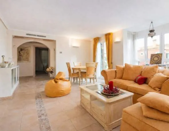 From the generous living room you have direct access to the terrace, where you can enjoy mountain views and overlook the communal areas. Central hot/cold air conditioning ensures comfort throughout the year. An outdoor communal parking space within the complex is also available. The apartment is available immediately for long-term rental.