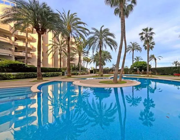 This stylishly modernized apartment is on the third floor of a well-maintained residential building with elevator, offering a great balance of comfort, tranquility, and a prime location. The complex features a spacious, beautifully landscaped pool area surrounded by palm trees and Mediterranean greenery, creating a relaxed, almost resort-like feel. Additional amenities include a concierge service, a private garage parking space, and an overall very well-kept community.