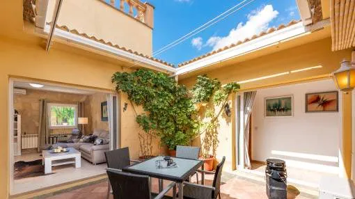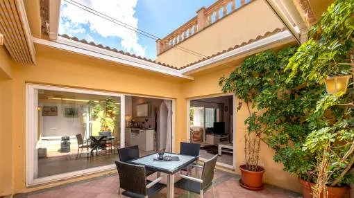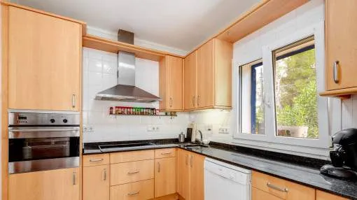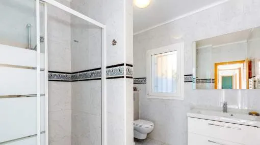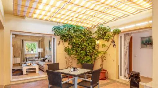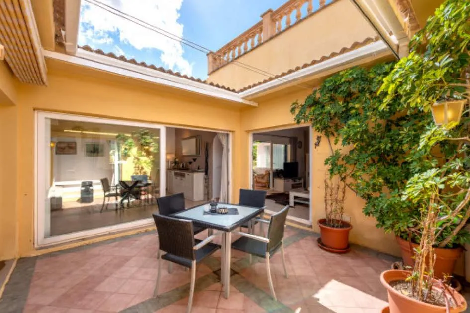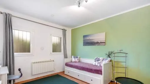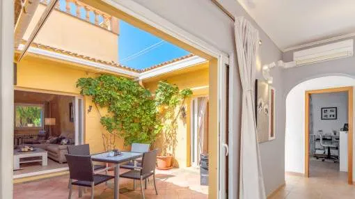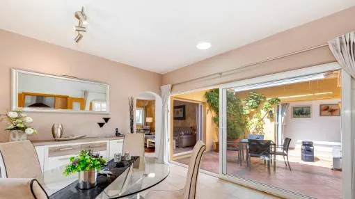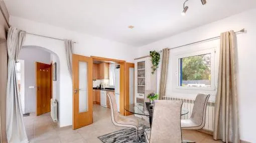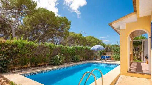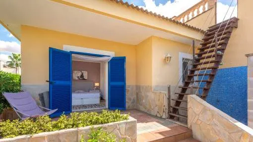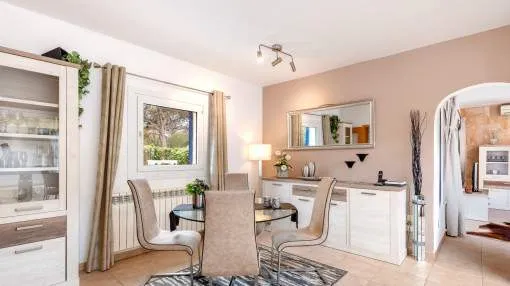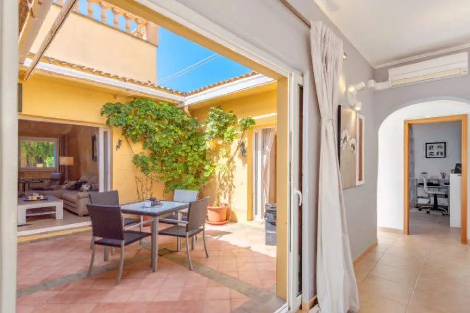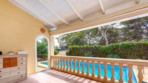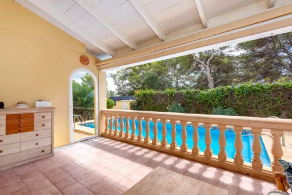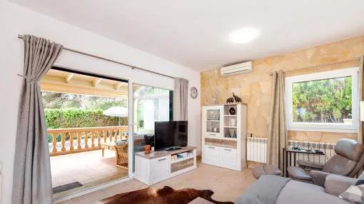 Details: This charming single-storey villa sits on a 600 sqm plot in an exceptionally quiet residential area and impresses with its high-quality construction built to German standards. With a living space of approximately 212 sqm all on one level, the property offers maximum comfort and, thanks to its barrier-free design, is also perfectly suited for wheelchair users. The villa features 3 bedrooms and 2 modern shower bathrooms, one of them en suite. The cozy living room with direct access to the veranda creates a warm and inviting atmosphere, complemented by a separate dining area. The bright kitchen is fully equipped with branded appliances and is connected to a convenient laundry room. A special highlight is the spacious 5 x 5 m patio with a retractable awning and custom-made PVC double-glass doors. All doors can be fully retracted into the wall, ensuring excellent ventilation while providing complete privacy. The outdoor area is designed for relaxation and enjoyment: a covered veranda, which can also be used in winter, leads directly to the private swimming pool (8 x 4.5 m) with outdoor shower and sun terrace. The well-maintained garden with lemon trees, ornamental plants, and two storage rooms adds to the Mediterranean charm. A carport for two vehicles is available, and the entire property is securely fenced. Additional features include central butane gas heating, air conditioning (warm/cold), ceiling fans, numerous built-in wardrobes, and PVC windows with double glazing and mosquito screens. Electricity (Gesa), municipal water supply, internet connection, and satellite dish are all in place. The energy certificate is currently being processed. In excellent condition, this property offers privacy, comfort, and quality, making it an ideal home to enjoy the Mediterranean lifestyle to the fullest. Returns from holiday lettings: For initial orientation you can use the “Porta Holiday Returns Calculator” without obligation to calculate your potential returns from holiday letting. NB: Due to the current legal situation it is possible that in certain municipalities renting restrictions may apply, or new touristic licences may not be granted. Your Porta Mallorquina real estate consultant will be pleased to advise you whether the property you have chosen is affected. Go to Returns Calculator. Location & surrounding area: The new urbanisation Bahia Grande is situated in south-coast and belongs to the prefered residential area due to its calm and close neighbourhood to Palma. The village Llucmayor, the marina of Arenal and the two golf courses Son Antem I and II can be reached in 20 minutes by car. In this area the prices for properties are still moderate in comparison with other areas.