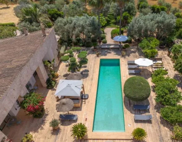 This exceptional finca property near Campos impresses with its peaceful location, its authentic character and a successful combination of traditional architecture and contemporary living comfort. Nestled in the gentle Mallorcan countryside, a hidden hideaway with sweeping views, great attention to detail and unique flair awaits you here. The spacious plot guarantees absolute privacy and delights with a lush, Mediterranean garden - a place that invites you to slow down as well as enjoy active moments. Ideal for private use, as a vacation home or for special occasions such as yoga retreats.