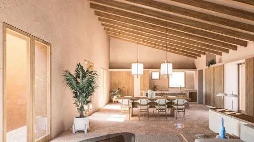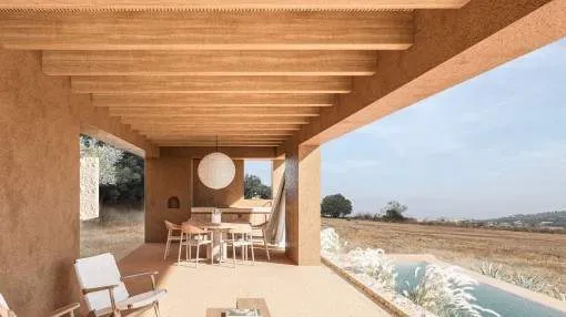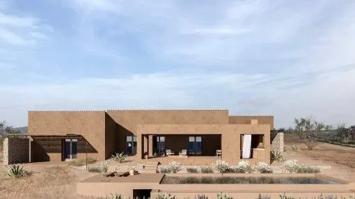 Details: Situated on a hill with Mediterranean plants and a sensational view over the countryside you will be able to enjoy the sun here. The entire property is on a ground level with large floor tiles. Panoramic windows with sliding doors lead to the terraces and pool with fantastic views. The large and open living and dining area is the focal point of the house. Next to it is the kitchen island with high quality appliances. Adjacent was planned the utility room to the garage. At the end of this wing is one of the elegant bedrooms with bathroom en suite and its own terrace, which also reveals the fantastic view and also access to the pool. In the left wing there are 2 more bedrooms with bathroom en suite. Also here there is a private terrace, which also allows the view in the distance. The garden offers various characteristics: an ornamental garden, Mediterranean plants, a 34.6 sqm infinity pool and a covered terrace. Furthermore, the following equipment features, which the future owner can still influence in the planning phase: Underfloor heating, water softener, air conditioning, alarm system with video system, klimalit windows and much more. A viewing is highly recommended! Further units of this project: referenceconstructed areabedroomsfloorprice117831339 m²30€ 1,490,000.- 117831A339 m²30€ 379,000.- Returns from holiday lettings: For initial orientation you can use the “Porta Holiday Returns Calculator” without obligation to calculate your potential returns from holiday letting. NB: Due to the current legal situation it is possible that in certain municipalities renting restrictions may apply, or new touristic licences may not be granted. Your Porta Mallorquina real estate consultant will be pleased to advise you whether the property you have chosen is affected. Go to Returns Calculator. Location & surrounding area: Vilafranca de Bonany is a charming, typical Mallorcan village in a central location on the island. The village is known for its tranquillity, authenticity and the wide fields that surround it – Vilafranca is particularly famous on the island for its melon cultivation and handmade brickwork. Here you will find traditional village houses, cosy cafés and small shops for your daily needs. Manacor is only 10 km away, and the beaches of the east coast and Palma can be reached in about 20–25 minutes by car. Vilafranca thus combines tranquillity and authenticity with good transport links.