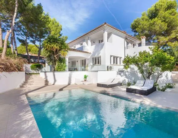 This modernly renovated and high-quality furnished villa is located in one of the most exclusive villa developments in the southwest, an absolutely quiet residential area with an international neighborhood and only two kilometers from the town center. Thanks to the good transport links, Palma and the coastal towns of the southwest with the most beautiful beaches, renowned golf courses, and marinas can be reached in just a few minutes by car.