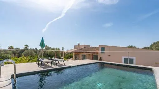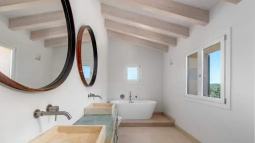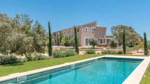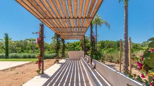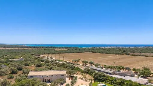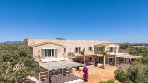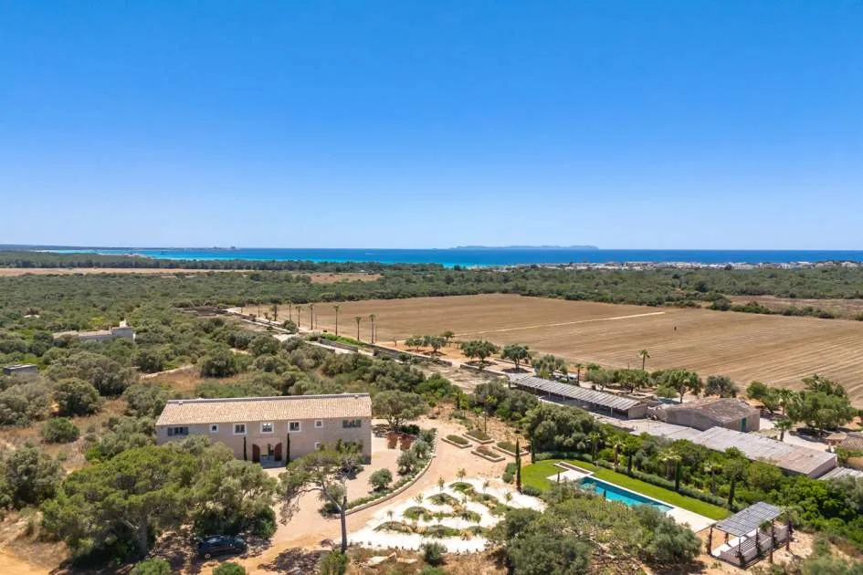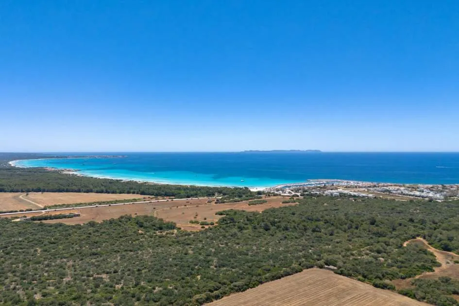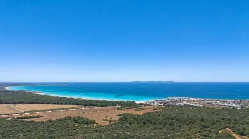 Have you always dreamed of owning a finca close to the beach, surrounded by privacy and Mediterranean charm? This elegant new-build villa near Sa Rápita might be just what you’re looking for. Just minutes from the turquoise waters of the Es Trenc beach, this exceptional property sits on an approx. 30,000 m² plot with stunning views reaching as far as the island of Cabrera.