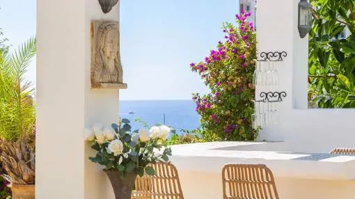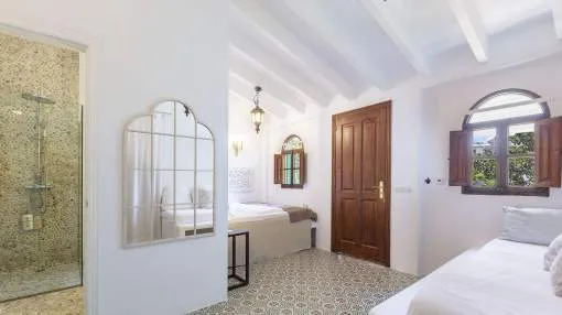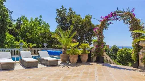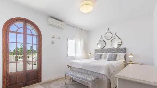 This spacious Mediterranean villa is situated in a side street of a sought-after district of Palma. Cala Mayor is located on the coast and offers a lovely sandy beach, a good range of gastronomy and shops as well as a small marina. It has good access to the entire southwest of the island, with magnificent beaches, prestigious golf courses and exclusive marinas. The villa was completely renovated in 2018 and provided with modern amenities and tasteful fixtures and fittings. The living area extends over two floors and is divided as follows:
