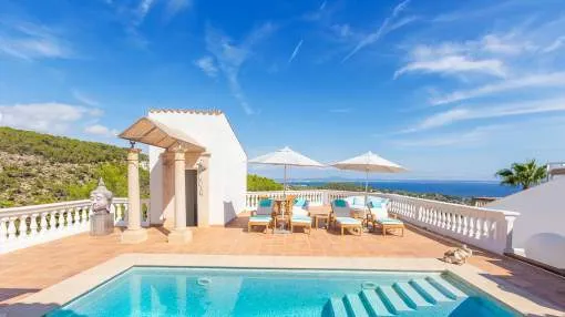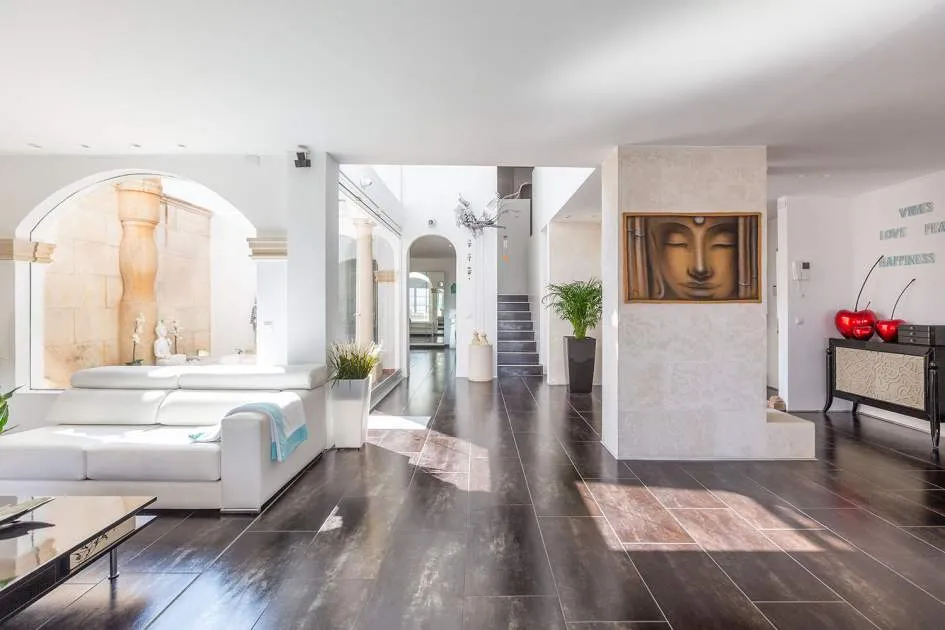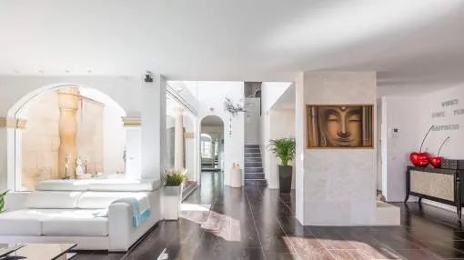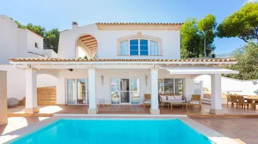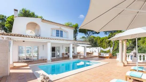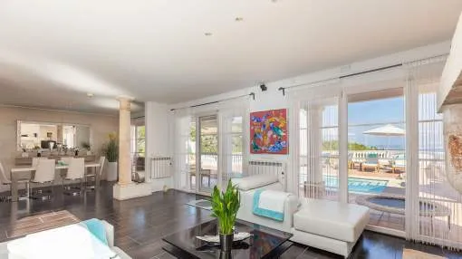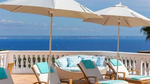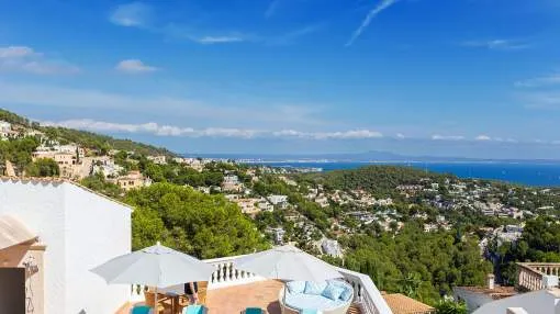 This Mediterranean-style villa is situated in the peaceful slopes of Costa d’en Blanes – one of the most sought-after residential areas in the southwest of Mallorca. Just minutes from Palma, its elevated position offers wide views of the sea and the Bay of Palma, along with maximum privacy.