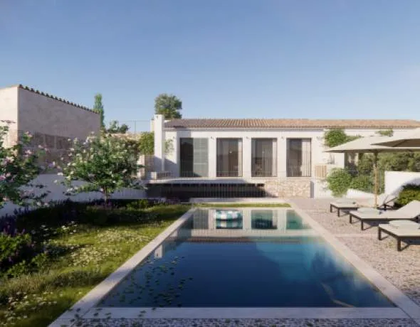 Details: This stylish renovation project is located in Sineu, a mature village in the heart of Mallorca, which is known for its original flair, good infrastructure and central location. It combines the original character of a traditional Mallorcan village house with contemporary living comfort and modern architecture. The plot covers approx. 340 sqm. A living and usable area of around 262 sqm is planned, distributed over 4 bedrooms and 4 bathrooms. The room layout offers both spaciousness and a high degree of privacy - ideal for families or guests. The interiors are open-plan and impress with plenty of natural light, clean lines and a modern, timeless aesthetic. High-quality materials and carefully selected furnishing details create an elegant yet homely atmosphere. The open-plan kitchen is seamlessly integrated into the living area and forms the central hub of the home. It is functionally designed, modernly equipped and ideal for socializing with family and friends. The outdoor area offers a 19 sqm pool surrounded by a small landscaped garden. A covered terrace invites you to relax and enjoy the Mediterranean climate in the evenings. The property is connected to the public electricity and water supply. An attractive project for buyers who want to realize an individual home with character in one of the most authentic regions of Mallorca. A valid building license is available. Returns from holiday lettings: For initial orientation you can use the “Porta Holiday Returns Calculator” without obligation to calculate your potential returns from holiday letting. NB: Due to the current legal situation it is possible that in certain municipalities renting restrictions may apply, or new touristic licences may not be granted. Your Porta Mallorquina real estate consultant will be pleased to advise you whether the property you have chosen is affected. Go to Returns Calculator. Location & surrounding area: Sineu is geographical the central village of Majorca and is situated in the region Es Plà. One of the attractions is the church Nuestra Senyora de los Angeles or the convent Convento de las Monjas. The main attraction is the weekly cattle and art market. Sineu has 3000 inhabitants.