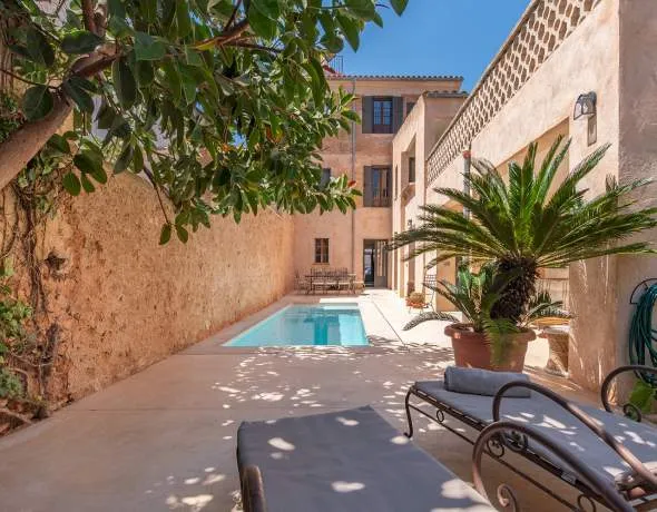 This stylish townhouse is located in the heart of Campos and combines traditional Mallorcan character with contemporary living comfort in a unique way. Behind the authentic natural stone façade is a high-quality renovated home with clear architectural lines, spacious room structures and a warm, Mediterranean feel.