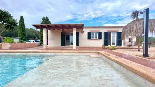 Details: This extensively-renovated ground-floor apartment is situated in a beautiful residential complex in Puig de Ros. Built in 2006, it was carefully renovated in 2020 with custom-made fittings and conversions. The spacious, bright apartment consists of a large living/dining area with open kitchen and adjoining utility room, a bathroom, and a master bedroom which impresses with its size, dressing area and en-suite bathroom. From the living area there is access to a 22 sqm covered terrace and the garden. Further features include hot/cold air conditioning, a fireplace for cooler weather, 2 underground parking spaces, a storage room, and well-maintained communal areas with a lovely pool zone. A further bedroom could be added by rebuilding a wall taken down during the renovation work. Monthly communal costs are approx. 125 €. Location & surrounding area: Puig de Ros, which belongs to the municipality of Llucmajor, lies south-east of Palma and provides a contrast to the lively Playa de Palma - Peace and rest are guaranteed here. It is comprised mainly of Apartmentbuildings and villas. Puig de Ros is the ideal starting point for long bicycle tours along the sea’s cliff line and into the island’s centre. The “Maioris” Golfcourse is immediately near by as well as a large supermarket. The airport and Palma are respectively 15 and 25 minutes away.