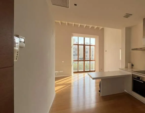 This elegant studio combines contemporary design, natural light, and a privileged location in one of the most emblematic areas of Mallorca’s capital. With wooden floors, high ceilings with exposed beams, and large windows, every corner conveys a sense of space and warmth despite being a compact home. The modern kitchen, fully equipped with Bosch appliances, includes an oven, induction hob, extractor fan, dishwasher, fridge, and washer-dryer. The bathroom offers a sleek and practical design, while the built-in wardrobe optimizes space for an urban and functional lifestyle. The property also comes with a parking space, a valuable asset right in the historic center. Living here means enjoying cafés, restaurants, markets, and cultural spots just steps from your door, surrounded by the unique atmosphere of the center. It’s an ideal space for an independent professional or anyone seeking not just a flat, but a lifestyle experience in the heart of Palma.