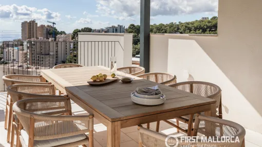 New Build Cala Mayor: Private Rooftop Terrace with Plunge Pool, BBQ, Outdoor Shower, and Partial Sea View