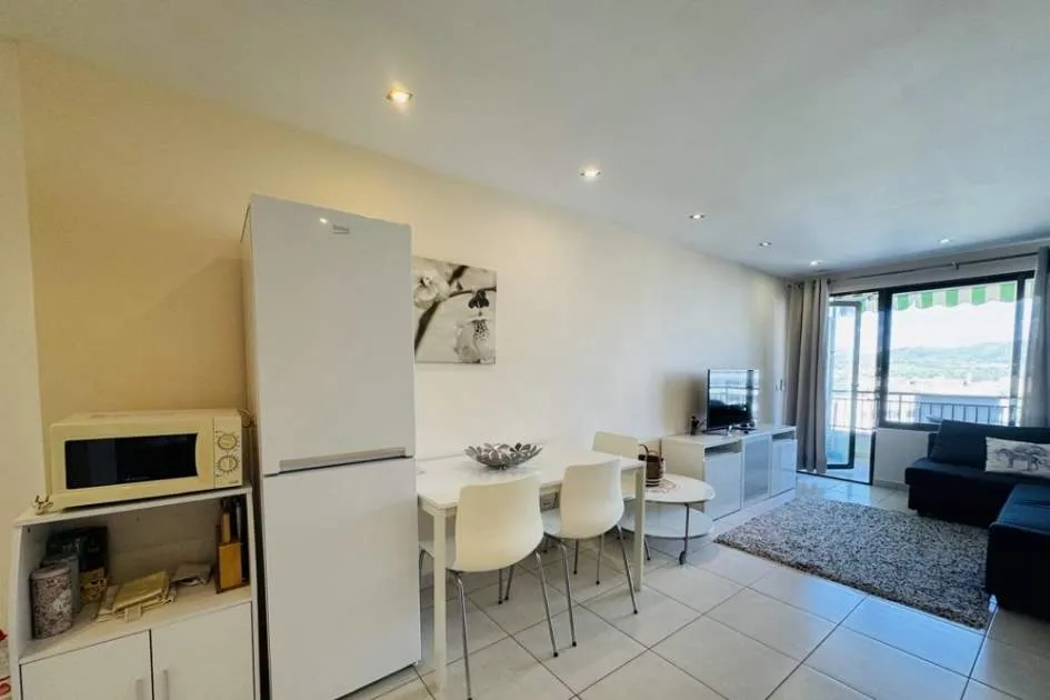 Living space of the apartment is about 35 sqm, distributed among a living room / bedroom, kitchen and 1 bathroom. Adjoining the salon, a terrace of 6 sqm benefits from the direct sea view over the bay of Santa Ponsa. Equipped with air conditioner and American style kitchen.