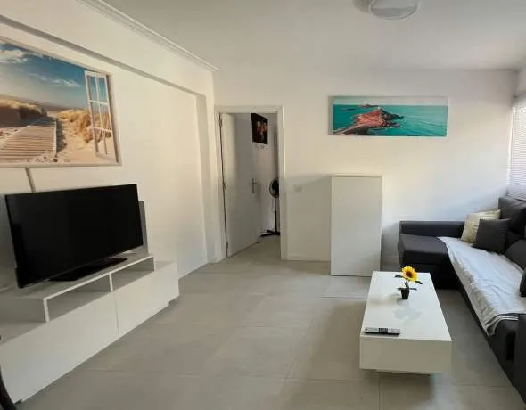 The apartment features a bright living room, an open kitchen that blends seamlessly with the space, a comfortable bedroom, and a bathroom. Additionally, it has a spacious terrace, perfect for enjoying the Mediterranean climate, with enough space to park up to two cars.