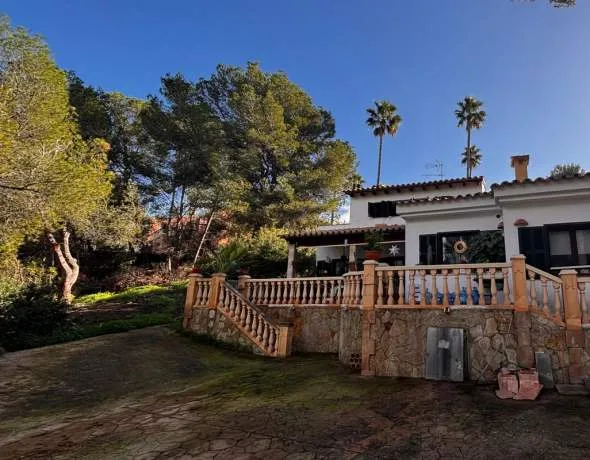 Detached house for sale in Santa Ponça, set on a generous 1,553 m² plot offering privacy and plenty of potential. The property has 160 m² built area (150 m² usable), distributed over three bedrooms and two bathrooms. It features a terrace, garden, storage room and a private garage space included in the price.