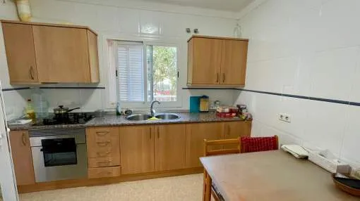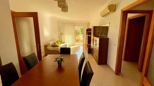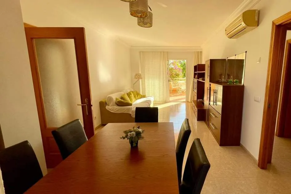 Located in the peaceful residential area of Ses Palmeres, this beautiful ground floor apartment combines privacy, comfort, and community living. The property offers a private entrance directly from the street in addition to the main communal access, providing a sense of independence and convenience. Inside, you’ll find a bright and spacious living room, a fully furnished and equipped kitchen, two comfortable bedrooms, and an additional office room, ideal for working from home or as a guest space. The apartment features two large terraces and a private garden with a barbecue area, perfect for relaxing or entertaining outdoors. It is part of a well-maintained community with a swimming pool.