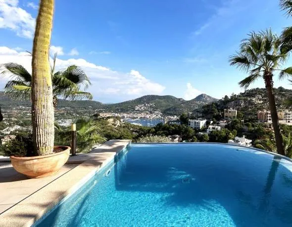 This magnificent villa offers a wonderful stay with stunning views of the Mediterranean. It is located in a very peaceful area of the island, within a small and exclusive community. Just a 5-minute drive from the beach and the Port of Andratx, which boasts an excellent international dining scene, this property turns your stay into a dream experience.