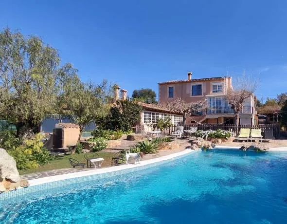 A rural retreat enjoying lovely open views across the countryside and a peaceful ambience within easy walking distance to the village centre of Portól. The property is constructed on a1.740m2 level plot over three floors and has a wonderful lake type swimming pool, a pond, several out buildings and a garage for 2 cars.