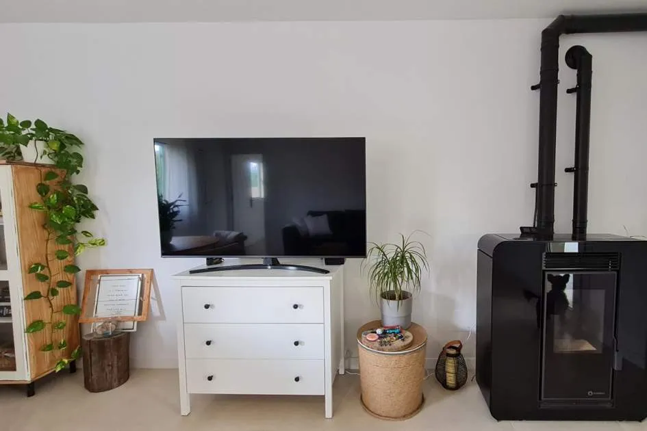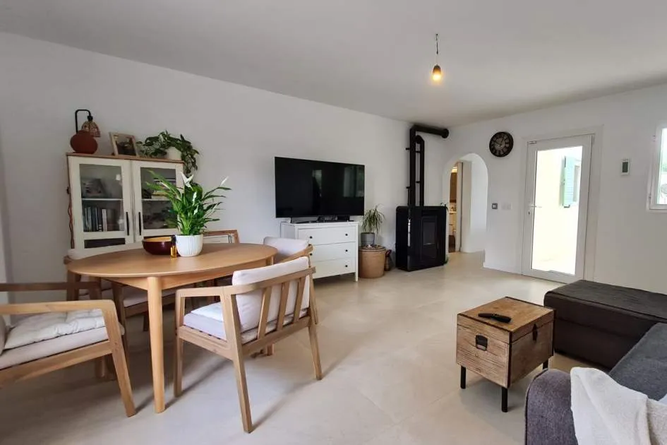 The house has been fully renovated using top-quality materials, featuring 8 cm SATE insulation on the façade and thermal insulation throughout the flooring, ensuring maximum comfort and energy efficiency. It comprises two double bedrooms and one single bedroom currently used as a dressing room, a bathroom with shower, a spacious and bright living-dining room with a high-performance pellet stove connected to a heating system, as well as a modern, custom-made kitchen fully equipped with premium furniture and appliances. Ceiling fans in the bedrooms provide extra comfort during the warmer months.