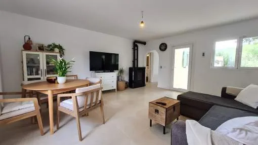 This beautiful country property is located in a peaceful and quiet area, just five minutes by car from the centre of Llucmajor. With a built area of approximately 105 m², of which 80 m² belong to the main house, it sits on a 1,862 m² plot that offers privacy, comfort and an ideal setting for year-round living.