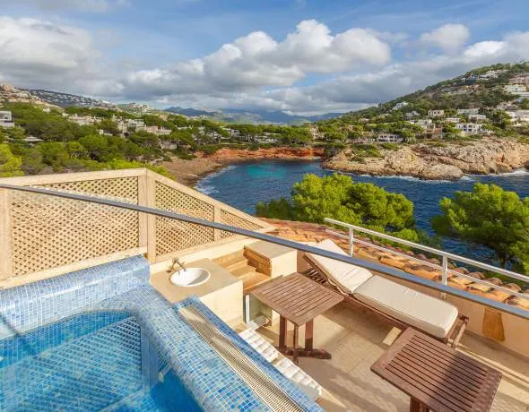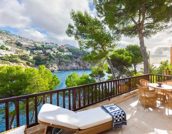 This Mediterranean townhouse is located in an exclusive seafront residence on the south side of the La Mola peninsula. Boasting stunning views of the beautiful Cala Marmacén bay, it is situated in a sought-after apartment and villa area. Surrounded by picturesque landscapes and the azure-blue Mediterranean Sea, this location offers the perfect blend of tranquillity and an elevated quality of life. The well-maintained residential complex features a spacious garden with a swimming pool. The port of Port Andratx, with its restaurants, cafés and shops, is within walking distance.
