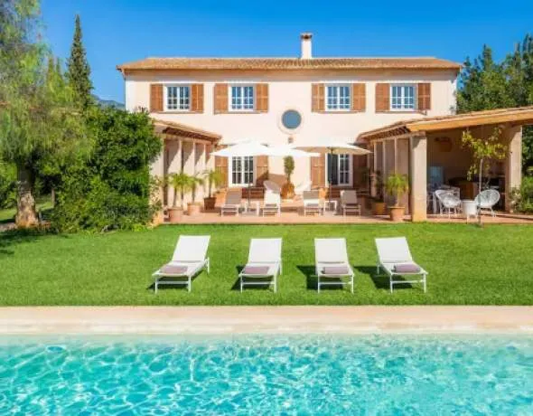 This well-kept chalet in Sa Coma, a village belonging to the municipality of Bunyola, is only about 20 minutes from Palma. The elevated location offers panoramic views as far as the bay of Palma. The house has a living area of around 260 sqm and stands on a fully fenced plot of approx. 2,400 sqm. The spacious outdoor area includes a beautifully landscaped garden, a large saltwater pool measuring 11 x 4 m and a U-shaped terrace equipped with garden furniture and a barbecue.