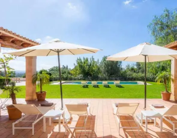 Details: This well-kept chalet in Sa Coma, a village belonging to the municipality of Bunyola, is only about 20 minutes from Palma. The elevated location offers panoramic views as far as the bay of Palma. The house has a living area of around 260 sqm and stands on a fully fenced plot of approx. 2,400 sqm. The spacious outdoor area includes a beautifully landscaped garden, a large saltwater pool measuring 11 x 4 m and a U-shaped terrace equipped with garden furniture and a barbecue. Features include gas central heating, air conditioning in all bedrooms and in the living area, a living room with fireplace, a separate dining room and a fully equipped kitchen. The room layout is comfortable: on the upper floor there are 2 bedrooms, each with its own bathroom en suite, on the first floor there are 2 further bedrooms and a smaller shower room. In total, the house has 4 bedrooms and 3 bathrooms. The villa is rented for the period from November 1, 2025 to March 31, 2026. The minimum rental period is 4 months. The rental price is a fixed price and includes all utilities. The deposit amounts to one month's rent. This makes the property particularly suitable for escaping the winter months in Germany and enjoying Mallorca's mild climate. Location & surrounding area: This lovely and picturesque village is situated at an altitude of 430 m in the Tramuntana mountains. The high valley has been a popular settlement area since prehistoric times. The Romans and Moores left their traces here. The most popular building is certainly the monastery “Cartuja de Jesús Nazareno”, in which Frederic Chopin and George Sand passed their famous winter months. The saint of the Island Santa Catalina Thómas was born here, and Archduke Luis Salvator of Austria, famous visitor of the Balearic Islands, constructed his beautiful residence Miramar in the surrounding area.