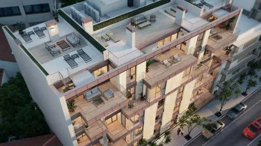 The complex consists of 7 buildings which are arranged around a circular pool landscape, with this apartment located on the left side of the communal grounds which greet with a Mediterranean garden with palm trees and tastefully laid out plants.