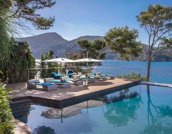A magnificent villa on sea’s edge in Camp de Mar. The property is in an unquestionably exceptional and truly breath-taking frontline locations with direct sea access. Overlooking the azure waters of the Camp de Mar and the open sea beyond, framed by the Mediterranean pines, it depicts the ultimate in relaxation. A sandy beach is within a few minutes’ walk as is an 18 hole Golf course “Golf Andratx” Camp de Mar offer an array of beach bars, restaurants and amenities, such as an authentic sea food restaurant set on a little island accessible via a boardwalk bridge. The luxury harbour of Puerto de Andratx can be reached in 5 minutes’ drive via the picturesque pine forrest cliffs. The capital city of Palma de Mallorca with its international airport is only 20 minutes away.