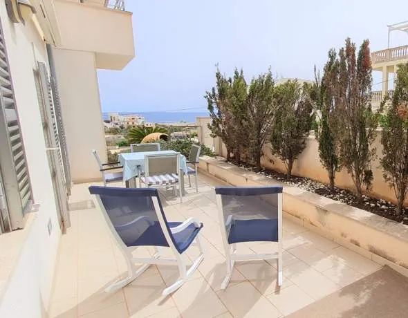 The apartment is a first floor, and has 2 spacious and bright bedrooms, 1 bathroom, a spacious and bright living room, the terrace with sea views, a fully equipped kitchen and a laundry room. On the terrace there is a table and a barbecue to enjoy the wonderful Mediterranean summer nights.