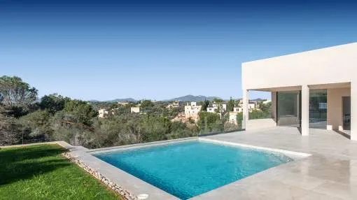 Details: Experience an exclusive combination of luxury and quality of life in this wonderful apartment, which is situated in a very desirable location in Camp de Mar, in the municipality of Andratx in the south-west of Mallorca. Picturesque surroundings are assured by its proximity to the charming harbour of Puerto Andratx and the popular beaches of Camp de Mar. It is within easy walking distance are diverse restaurants, bars, shops and enchanting sandy bays, presenting a true paradise for residents and holidaymakers alike. The ZINNIA OCEAN community is comprised of 6 buildings housing a total of 32 modern apartments and penthouses. Residents have access to 2 communal pool areas, beautifully landscaped gardens, and ample parking - all with the highest standards of quality and design. The sensational Mediterranean garden of the community extends over approx. 1,000 sqm and overlooks the well-kept communal pool area. This exclusive ground floor apartment has an area of approx. 178 sqm, with high quality furnishings and fittings and impressing with 4 bedrooms with fitted wardrobes, 3 bathrooms and a guest WC, all providing a maximum of comfort and convenience. The spacious, openly-designed living area has large windows allowing the entry of ample natural light, and is connected to a modern fitted kitchen which provides access to a beautiful terrace and a private garden. Further features and amenities include air conditioning, a lift, a fireplace, double-glazed windows and tiled and stone flooring, all underlining the luxury and sophistication of this exclusive property. Additionally, there is also a large area on the lowest level which would make an ideal guest apartment or fitness room. Location & surrounding area: Camp de Mar has developed to a luxury holiday destination by its famous owner of vacational houses. The famous 18 holes golf course is another attraction. The location of Camp de Mar in reference to Palma and the airport can be seen as ideal. The city life of Palma is arrriveable in only 30 minutes by car. Nowadays there are some glamorous restaurants and shops nearby the delightful bay that is surrounded by rocks.