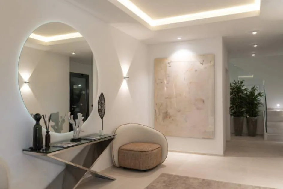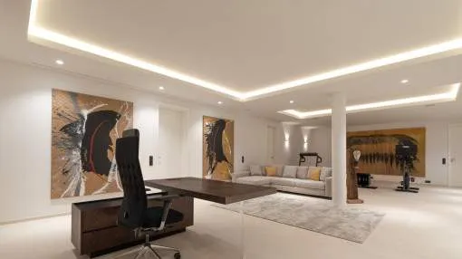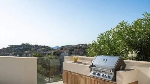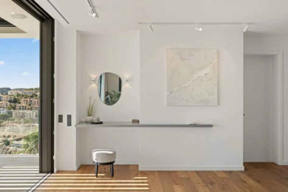 Details: Experience exclusive luxury amidst the fascinating landscape of Port d'Andratx with this breathtaking villa. Built in 2023, it presents a masterpiece of modern architecture and sets new standards in terms of design and living comfort. Nestled in the prestigious location of Puerto Andratx, it offers far more than just exceptional living space. Its floors, with an elegant combination of high-quality parquet and exquisite stone, underline the exclusivity of the property, with a special highlight presented by the fireplace which creates an incomparable atmosphere on cooler evenings. A private pool provides refreshment and relaxation on warmer summer days, and perfectly rounds off this exceptional home. An impressive living space of approx. 691 sqm is spread over 2 levels, and impresses with its well-designed room layout and exquisite materials. It includes 5 bedrooms and 7 bathrooms, guaranteeing privacy and comfort for every family member or guest. The quality of the fittings and furnishings leaves no wishes unfulfilled, placing the property seamlessly in the category 'luxurious'. This superb villa in Port d'Andratx presents a rare opportunity to enjoy modern luxury in one of the most sought-after locations on the island, redefining the meaning of exquisite style and unparalleled quality. Please do not hesitate to contact us for further information, and experience the ultimate dream home in one of the most attractive and prime locations in Mallorca. Returns from holiday lettings: For initial orientation you can use the “Porta Holiday Returns Calculator” without obligation to calculate your potential returns from holiday letting. NB: Due to the current legal situation it is possible that in certain municipalities renting restrictions may apply, or new touristic licences may not be granted. Your Porta Mallorquina real estate consultant will be pleased to advise you whether the property you have chosen is affected. Go to Returns Calculator. Location & surrounding area: Port d'Andratx is one of the best-known natural harbours in Mallorca, once a modest fishing village which, over the years, has become one of the most popular and exclusive areas on the island with its exceptional villas, luxury hotels and nautical activities and numerous high-quality gourmet restaurants serving every kind of international delicacy. Apart from its bars, boutiques and restaurants Port d'Andratx is surrounded by wonderful Mallorcan nature, including the bathing bays of Cala Llamp, Cala Moragues, and Cala d'Egos offering pure relaxation. The fishing way-of-life of the harbour, however, has never been displaced and in fact is expanding, reflected in the fish market which takes place after the arrival of the fishing boats at the pier. There are also monuments in the harbour of great historic and architectural interest, such as Sant Carlos on the pier, or the defensive towers. The unforgettable sunsets and the unique flair which make the area so unique can best be celebrated at the end of the day accompanied by an enjoyable glass of wine at the side of the harbour.