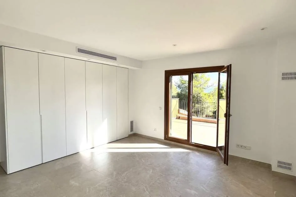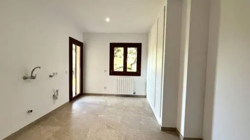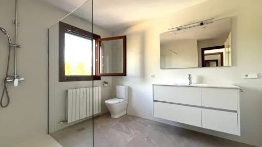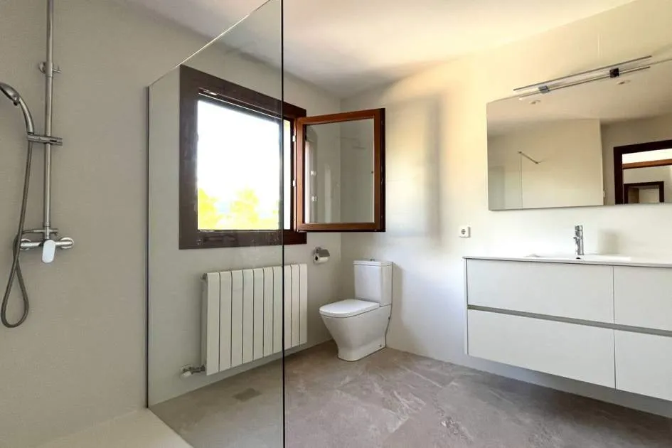 Upstairs, the main bedrooms are located, all with en-suite bathrooms and private terraces that fill the spaces with natural light and open views. One of the bedrooms also features a walk-in closet, adding an extra touch of comfort and style.