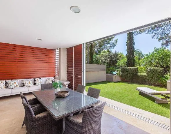 This spacious and stylish apartment is in one of the most exclusive developments in the southwest of Mallorca – just a few steps from the renowned Bendinat golf course. It consists of six buildings with a total of 80 properties and has a 24-hour security service. Nestled in a beautiful Mediterranean park garden with lovingly designed terraces, two communal pools, and a separate children’s pool, this complex is a green oasis of tranquility and upscale living.