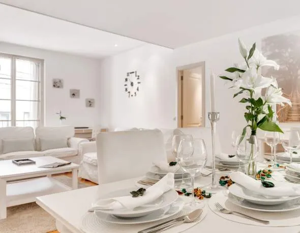 Situated on the third floor with lift access, the apartment features high ceilings, generous living spaces and abundant natural light. The elegant living and dining area with wooden floors opens onto a charming balcony overlooking Plaza Marqués de Palmer and the entrance to Plaza Mayor. A fully equipped kitchen with separate utility room complements the spacious layout. The property also benefits from a private underground parking space within the building, a rare and valuable feature in the Old Town.