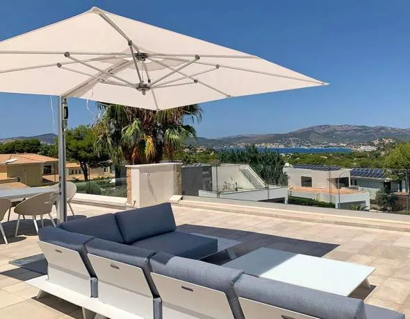 This luxury villa under construction with sensational sea views is situated in a sought-after residential area above Puerto Portals, one of the most exclusive marinas on the Mediterranean. The location offers absolute tranquillity and very good access to Palma and the southwest of the island with the most beautiful beaches, several marinas and golf courses as well as an extensive infrastructure. The airport is within approx. 15 minutes by car. The modern house with lift was built with selected materials and to the highest construction standards. The property also has a guest studio with terrace below the pool level. There is also a spacious roof terrace with a chill-out lounge and breathtaking panoramic sea views. The outdoor area boasts a beautifully landscaped garden, infinity pool, inviting terrace areas and a garage for several vehicles.