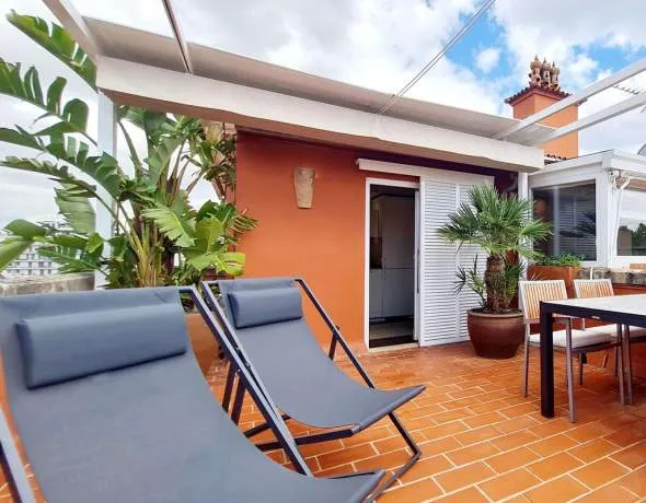 In the elegant residential neighborhood of Palma, Son Armadans, known for its elegant period small palaces and its proximity to lively Santa Catalina, we find this designer penthouse on the second floor of a renovated old palace.