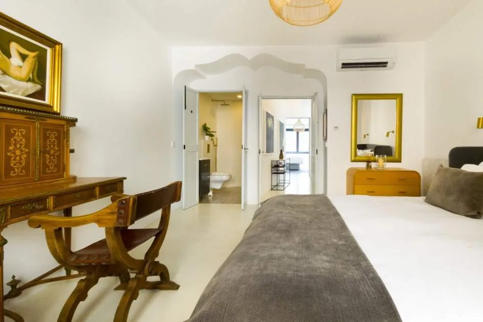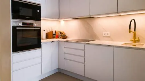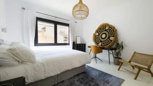 Elegant Refurbished Townhouse in the Heart of Sóller Set on a peaceful street just steps from Sóller’s iconic main square, this beautifully refurbished townhouse offers a rare opportunity to own a contemporary home in one of Mallorca’s most desirable towns. With cafés, restaurants, boutique shops, and the historic tram to Port de Sóller all just moments away, the location combines village charm with everyday convenience — all in walking distance. Refurbished to the highest standard in late 2023, the home offers approximately 260 m² of thoughtfully designed living space. Micro cement floors run throughout, paired with underfloor heating and integrated air conditioning powered by a highly efficient, low-consumption heat pump. Smart home technology ensures effortless control of climate systems and the plunge pool, whether on-site or remotely. The property offers three generously sized bedrooms, including a striking principal suite complete with a wall-mounted projector and access to a private rooftop terrace. The main living area opens through full-width bifold doors onto a south-facing terrace — the perfect setting for al fresco dining and relaxing by the plunge pool. On the lower level, a well-appointed gym, full bathroom, laundry area, and ample storage provide additional comfort and functionality. Every window is double-glazed with UV protection and designed to tilt or fully open, flooding the home with natural light and fresh air. A state-of-the-art water system delivers softened, filtered, and chilled drinking water throughout. The sleek, modern kitchen is fitted with premium Bosch appliances and seamlessly complements the home’s contemporary aesthetic. This exceptional residence is offered fully finished and ready for immediate enjoyment — ideal as a permanent home, an elegant holiday retreat, or a smart investment in the heart of Mallorca’s celebrated Sóller Valley. Exclusively offered by First Mallorca