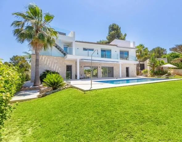 This modern villa is located in one of the most sought-after residential areas of Santa Ponsa. Situated in a tranquil and private setting at the end of a small cul-de-sac, it offers a green environment close to the coast, as well as a low-maintenance Mediterranean garden that blends harmoniously into the overall surroundings. The lively town center is only about 1.5 kilometers away and provides excellent infrastructure with a wide range of shopping facilities, restaurants, medical services, and numerous other amenities.