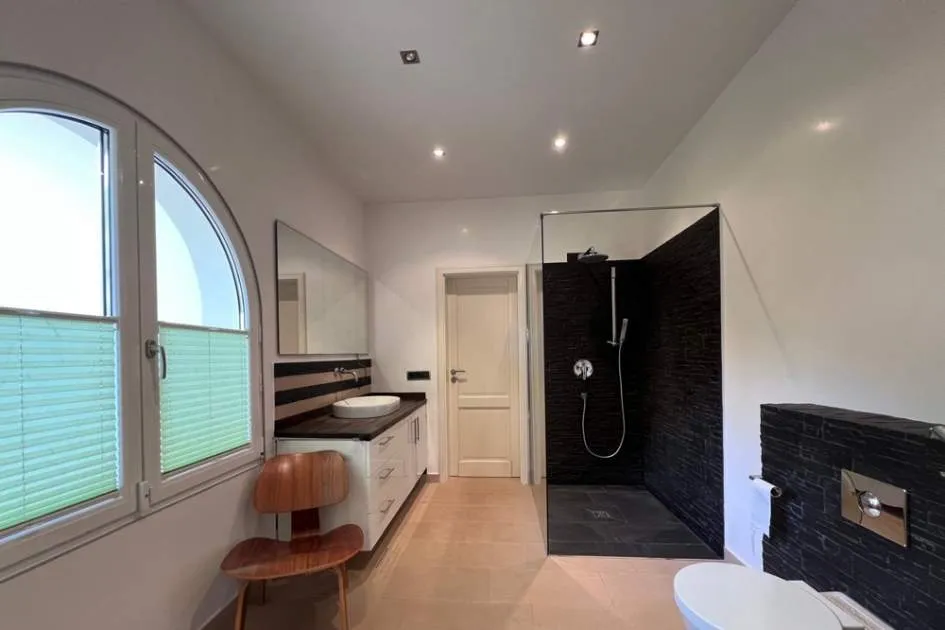 The property features open-plan living areas that ensure both space and privacy, along with a large terrace and balcony that connect with the outdoors, a private swimming pool surrounded by a well-maintained Mediterranean garden, and a heating/cooling system that guarantees maximum comfort throughout the year.