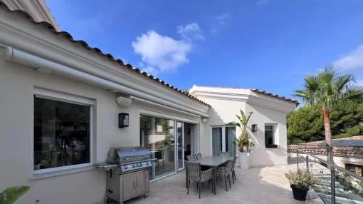 This elegant, fully renovated luxury villa is located in the prestigious residential area of Nova Santa Ponsa in the southwest of Mallorca. Featuring a modern design and high-quality finishes, the property combines comfort, spaciousness, and Mediterranean style.